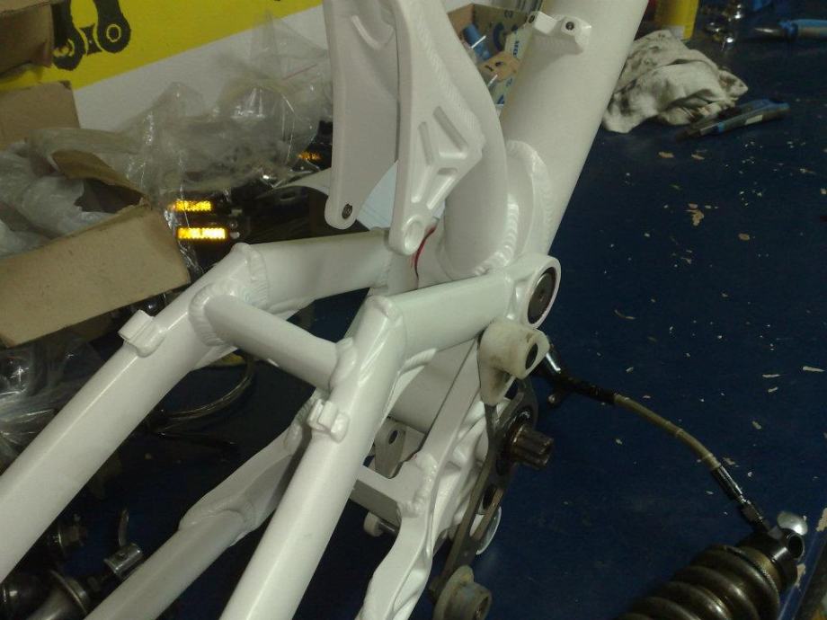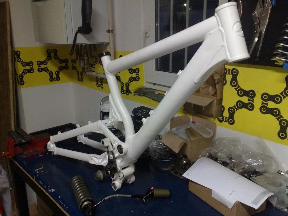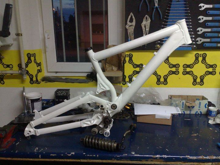 Zbog ručne boje je plastificirana u mat bijelu te su tom prilikom zamijenjeni SVI ležajevi na rami i SVI šarafi tako da je rama potpuno nova!