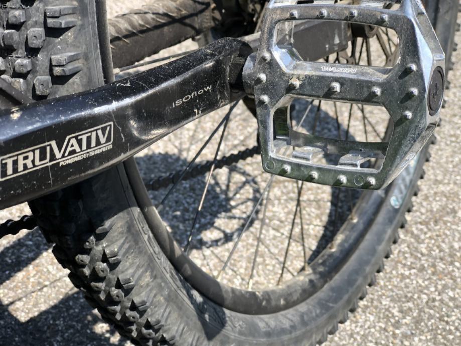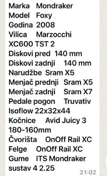 Kompletan, ispravan, sa vrhunskim komponentama po narudžbi. Model 2008., visina rame 17" i danas odličan za downhill, primjeren sportašu visine oko 170cm ili hvalisanju po špici bez obzira na visinu i dob. Tko zna o čemu je riječ, sve vidi na fotografijama. Ima tragove korištenja i nešto blata na sebi lakog za očistiti. Promjer diskova 180mm, ostale specifikacije nalaze se u galeriji.