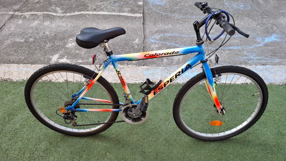 Prodajem MTB Esperia Colorado iz 1997. godine u izvrsnom i očuvanom stanju. Prvi sam i jedini vlasnik. Na biciklu je SVE originalno osim sjedala (Decathlon), guma i zračnica koje su prije nekoliko godina stavljene kompletno nove (Kenda Cross). U potpunosti je ispravan i lijepo utegnut, mjenjač Shimano SIS 21 brzina, kočnice, upravljač - sve radi besprijekorno. Od prvog dana je garažiran i pohranjen na suhom. Izuzetno malo je vožen sve ove godine. Robustan, kvalitetan i jednostavan bicikl za održavanje. Bicikl je očišćen, podmazan i spreman za cestu.