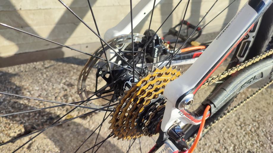 Ima novu kazetu, gume, novo sređeni tubeless(mlijeko,ventili i traka), nova mašinica, pedale, BB, sic štanga,diskove i novi DTswiss star ratchet sa 18 na 32 zuba konverzija.