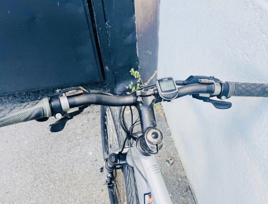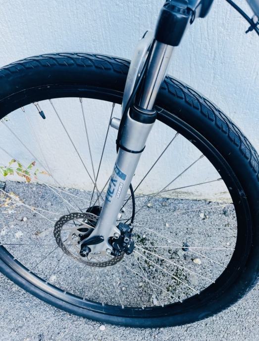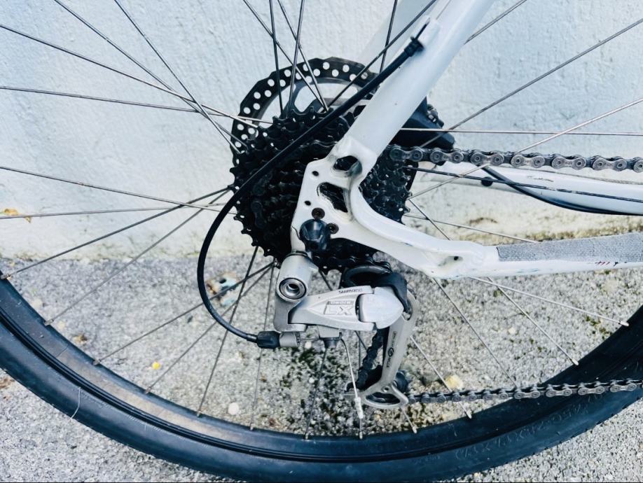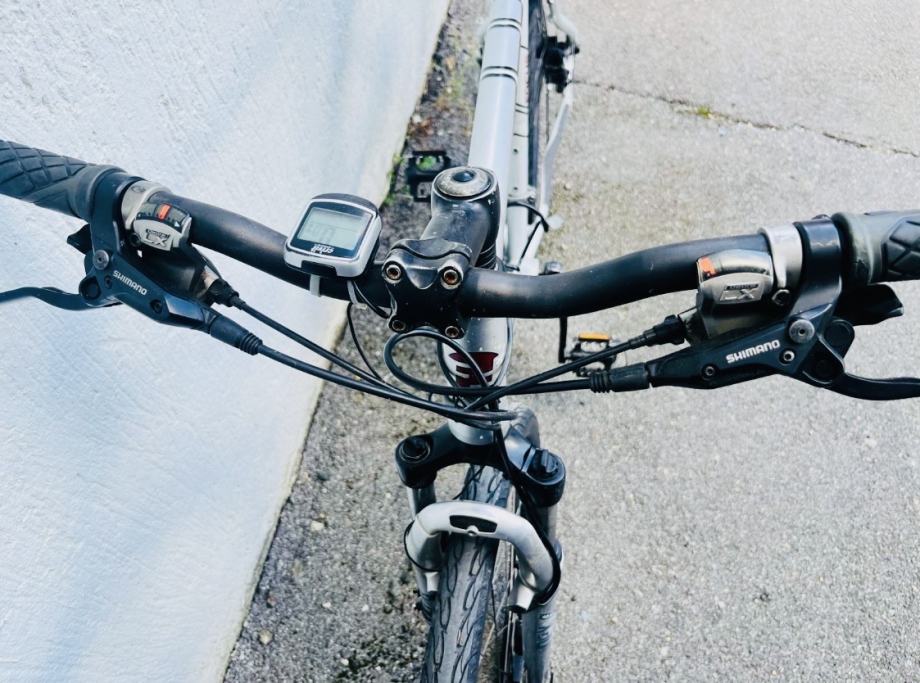 Mjenjači i shifteri shimano deore LX (3*9 brzina), hidraulične disk kočnice, prednji amortizer na zaključavanje, ciklokompjuter, nosač za bidon...