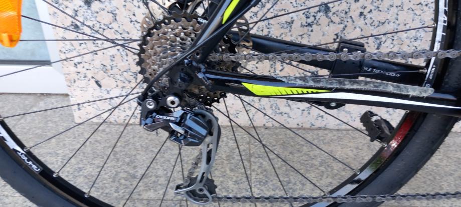 Alu rama za osobe do 195cm, prednja suspenzija na zaključavanje, deore oprema, 27brzina,nosač bidona, nogica, 28cola dupla stjenka felge, nove gume, hidraulične disk kočnice, servisiran