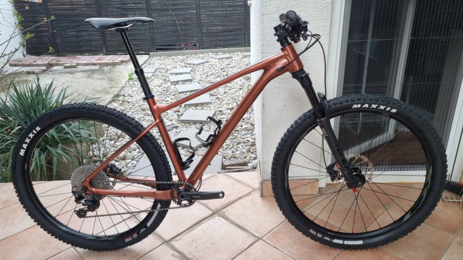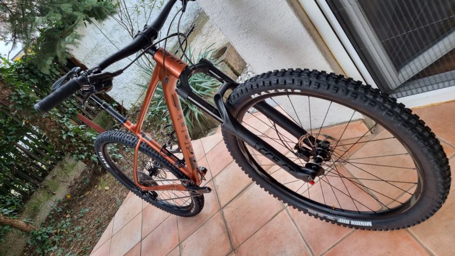 Većina stock dijelova promijenjena tako da je sad tu 11sp XT mjenjač i shifter, 11-46 kazeta, Deore 1x pogon umjesto Praxisa, Deore kočnice umjesto Tektro-a, centreline rotori.