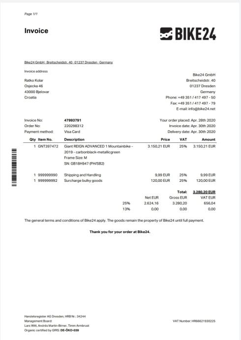 Bicikl je kupljen 2020.g. u Internet trgovini Bike24, prvi sam vlasnik, vrlo je malo vožen i u odličnom stanju, razlog prodaje su drugi prioriteti tako da me nikakve zamjene ne zanimaju.