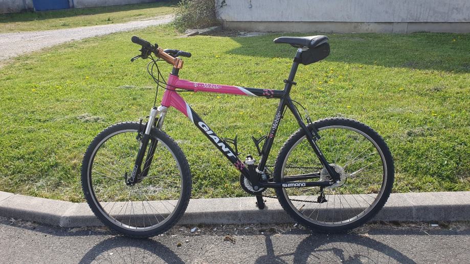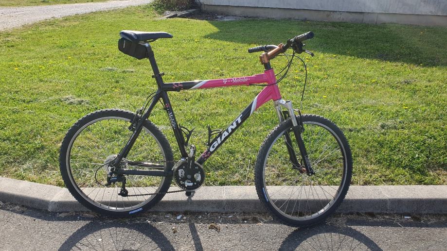 GIANT, u T-mobile team bojama, sačuvan, 3×8, kotači 26", rama xl. Prodaje se bez nosača bidona i sa drugim, flat pedalama.