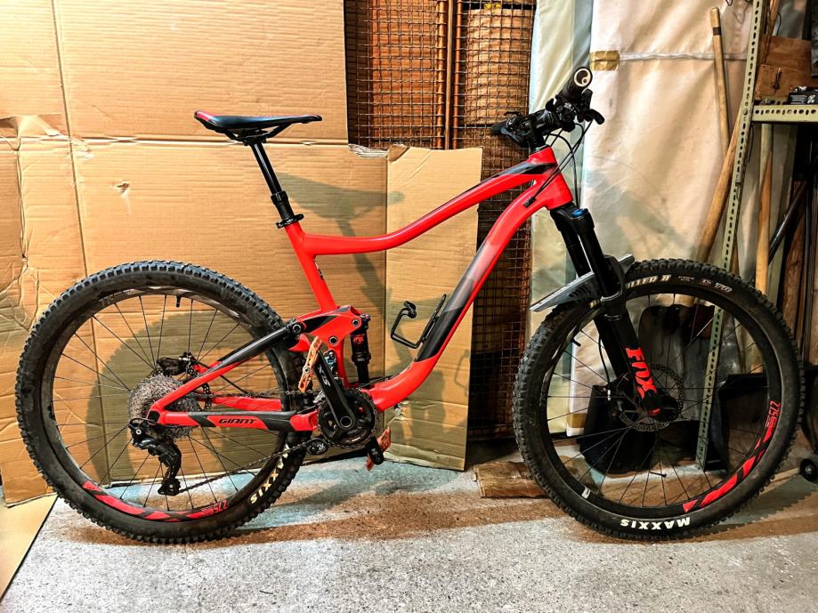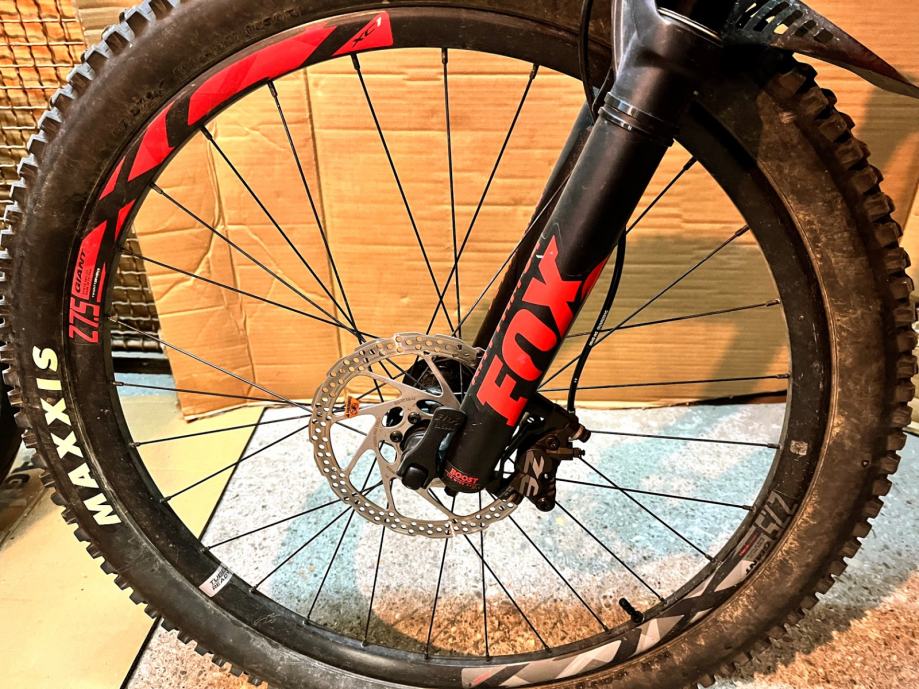 Wheels:Giant Tracker Boost hubs, Giant XC-1 rims, Maxxis High Roller II 60a 27.5x2.4in tyres, Tubeless