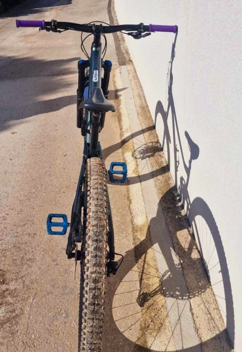 Bajk je u TOP stanju i redovno je servisiran. Stavljene su nove gume, ljubičasti Race Face gripovi i plave Race Face pedale.