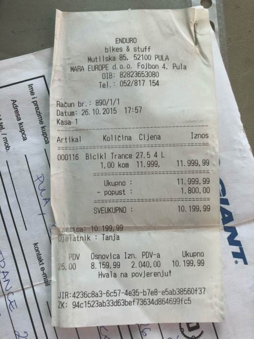 Prodajem giant trance, odlican, rama L velicine, kotaci 27,5. Uredni papiri, racun