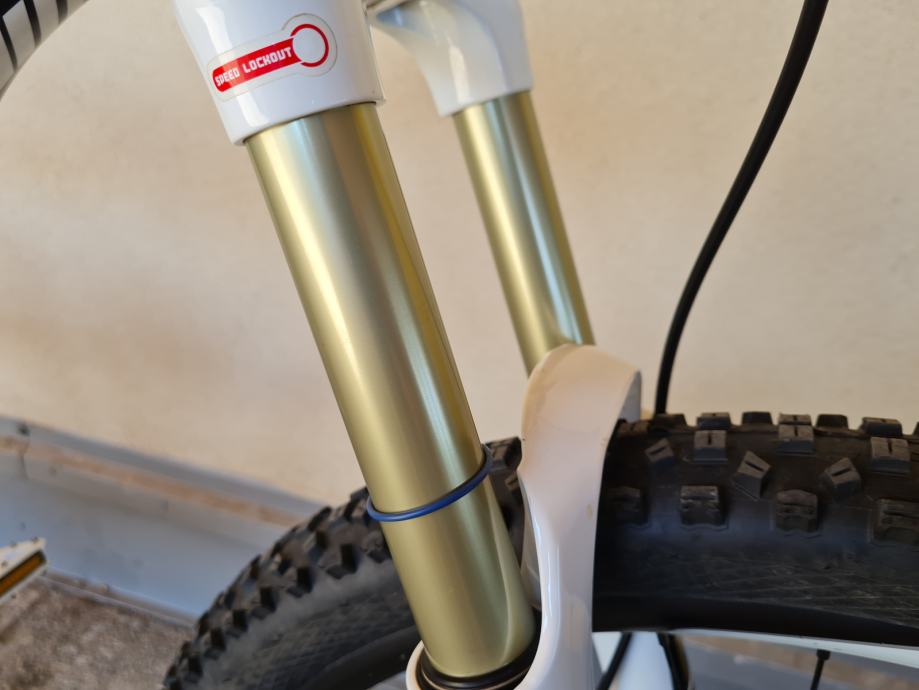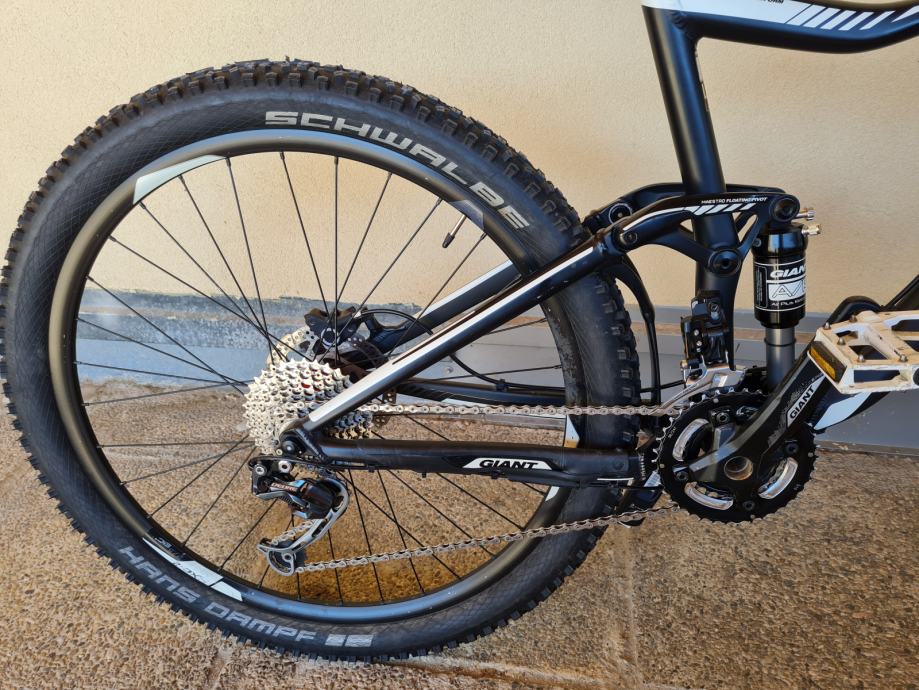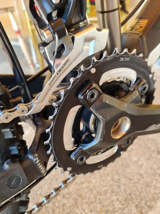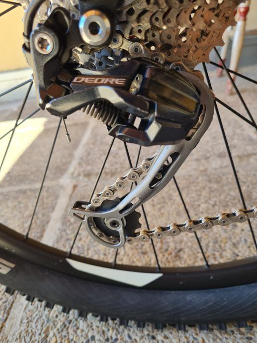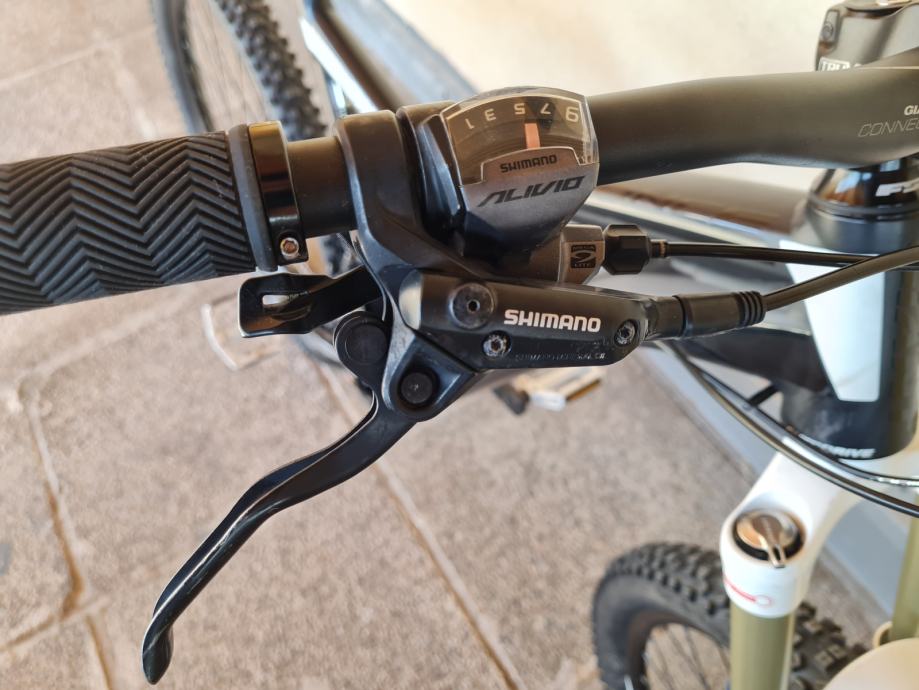 Bicikla je u odličnom stanju, jako je dobro održavana, nema nikakvih oštećenja, rama ima samo pokoju ogrebotinu, prednji i zadnji armortizeri rade odlično, mjenjači brzina su tihi i rade bez greške. Bicikla je spremna da se na nju sjedne i vozi.