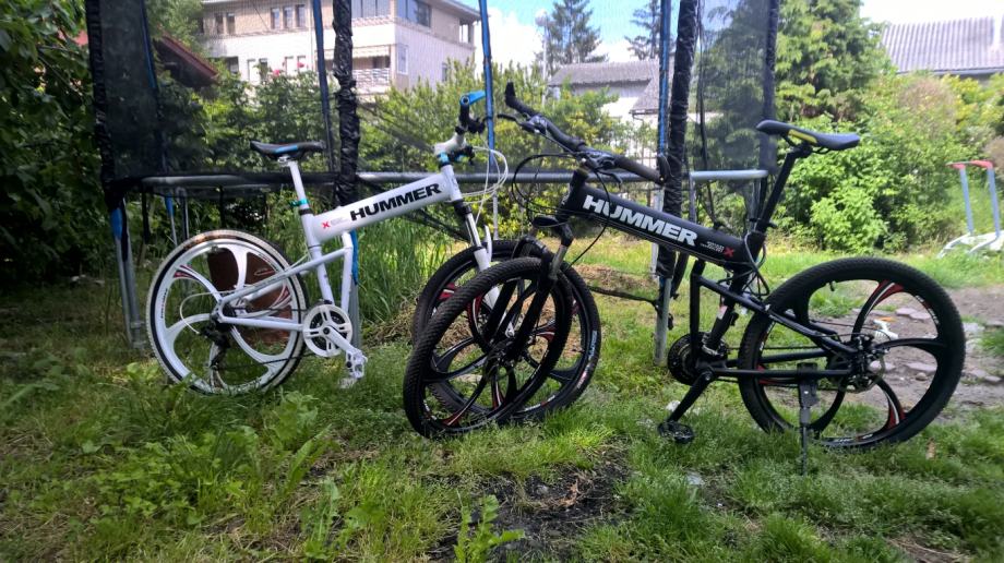 Prodajem dva odlicna, kvalitetna, kompletno aluminijska, zapakirana i izuzetno atraktivna šminkerska Montica HUMMMER MMTX, koji osim sto se isticu nesvakidasnje modernim dizajnom i rijetko super viđenim felgicama se i preklapaju, odgovaraju od 164 do visine 194 cm, te stanu u vecinu automobilskih prtljaznika, cak su pogodni i prakticni za odnjeti na jahte i jos brdo zamislivih, realno mogucih putopisnih avantura, oba mogu biti Vaša za 6499 kn. ili komad po 3499.
