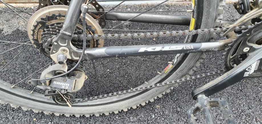 KHS je američki bicikl. Oprema SRAM (mjenjači i zadnja mašinica), Shimano srednja mašinica, 21 brzina (prva brzina dodatno olakšana za teže uzbrdice), disc kočnice sa shimano diskovima, aluminijska rama, SR Suntoure prednja vilica. Servisiran prije 6 mjeseci.