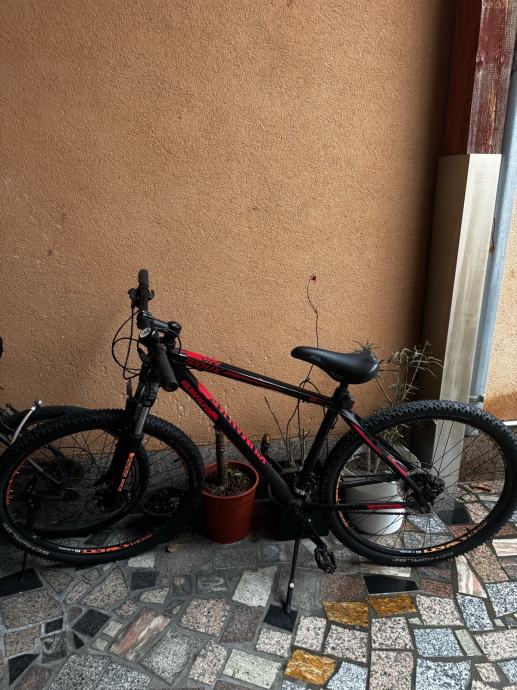 Prodajem Kilimanjaro Sioux 29 mountain bike s full suspension okvirom. Bicikl ima XL okvir (53-57cm) s muškom geometrijom i kotače veličine 29 inča. Okvir je u kombinaciji crvene i crne boje. Bicikl je opremljen disk kočnicama i amortizerom sprijeda i straga, što ga čini pogodnim za zahtjevnije terene.