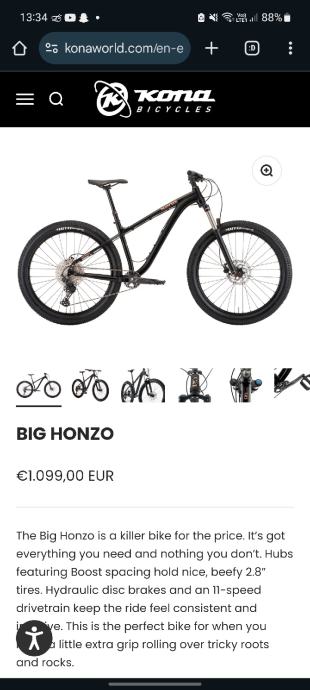 KONA Big honzo 2022. Bike je inace 1100 eura al ga prodajem za 880 zato mi si zelim kupit nesto drugo. Kupljen prije oko 3 mjeseca sa Garancijom. Bike ima i dropper sa 120 mm.
