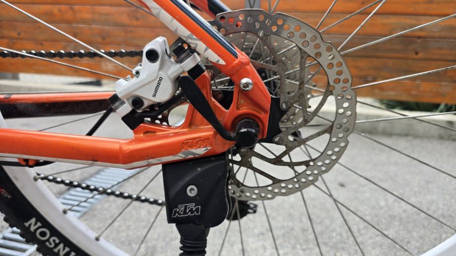 Prodajem rabljeni KTM ULTRA FUN MTB bicikl atraktivne narančaste boje s hardtail ramom veličine L. Bicikl ima kotače od 29 inča i namijenjen je muškoj geometriji vožnje. Idealan je partner za savladavanje brdskih staza, ali je istovremeno i izuzetno udoban i pouzdan za svakodnevne gradske i prigradske vožnje.