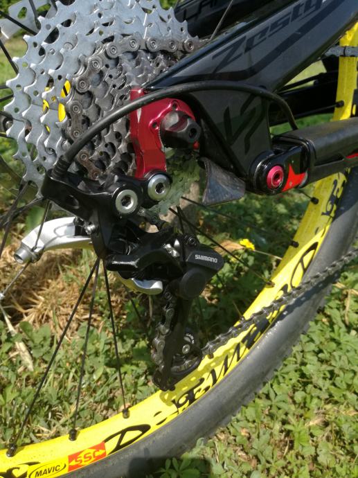 Rama je full carbon. Oštećenja nema, pukotina nema, ima par ogrebotinica karakteristične za FS MTB. Bez padova. Stanje 9/10.