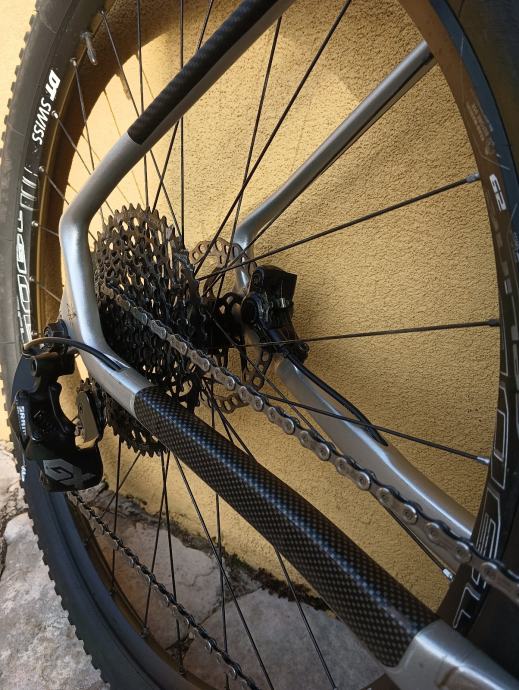 Opremu ima: Sram GX 1x12 pred malo promjenjena kazeta i lanac...shimano kočnice sa novim galfer diskovima i paknama, vrhunska vilica Rock shox sid ultimate 100mm..kotači DT Swiss M1900. Uz biciklu dolazi i droper tranzX