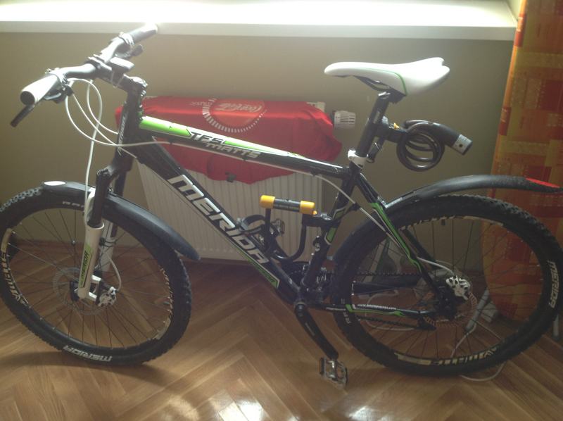Prodajem mtb bicikl, Merida Matts Tfs 100D, star godinu dana, u savršenom stanju, pod garancijom, nikada padano s njega,nije bilo kvarova, nije niti jednom guma pukla (još uvijek su na njemu originalne gume, vanjske i unutrašnje), svi dijelovi su originalni, Alivio mjenjači, Tektro diskovi. Na poklon uz bicikl dajem 2 lokota, jedan je U-Lock (sa 5 ključeva) i jednu debeli sajlu (također sa 5 ključeva), nosač bidona, bežični ciklokompjutor VDO A4+, prednji i zadnji blatobran koji se montiraju i demontiraju za 2 minute. Vrijednost lokota,VDO i blatobrana je oko 500 kuna,to poklanjam kupcu bicikla.