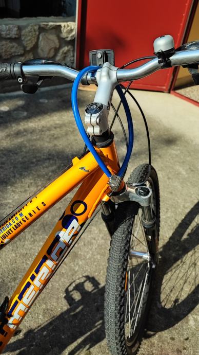 Stanje kao na slikama, postoji ogrebotina na rami. 8 brzina. Uz bicikl dolazi zvonce, stalak za bocu za vodu, sajla i nogara. Potrebno staviti nove gume jer bicikl neko vrijeme nije vožen. Osobno preuzimanje uz prethodnu najavu.