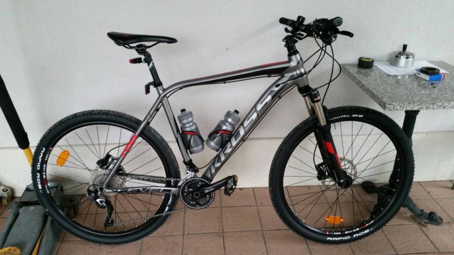 Prodajem očuvan mountain bike-kao novo. Model je Kross level R6, velicina L, kotaci 27,5 , hardtail, dva nosača za bocu, prednje led svjetlo, nosač sa pumpom, display-mjerač brzine i udaljenosti, samo prednja suspenzija koja se može blokirati. Prodaje se za 600,00 € ili mijenjam za razno.