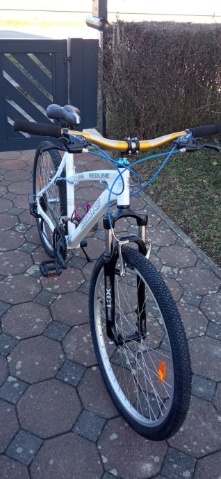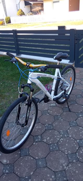 prodajem kvalitetan MTB bicikl etabliranog španjolskog proizvođača REDLINE doslovno nov,kupljen u Švicarskoj i vožen od trgovine do stana,aluminijska rama,najoptimalniji za visinu vozača od 164-182 cmkotači 26 cola,alu felge,gume također doslovno nove-RIVERSIDE,21 brzina 3x7,mjenjači,ručice mjenjača,lanac,kazeta-SHIMANO,kočnice V brake-TEKTRO,široki komforni volan,prednja vilica sa suspenzijom-SR SUNTOUR XCT,čvrsti stabilni alu bočni nogar-URSUS,nosač bočice za piće itd,sve vidljivo na slikama,doslovno sve novo,u cijenu uračunata dostava do 50 km u jednom smjeru,bez dostave cijena 9 eura niža,pogledajte i ostale moje oglase