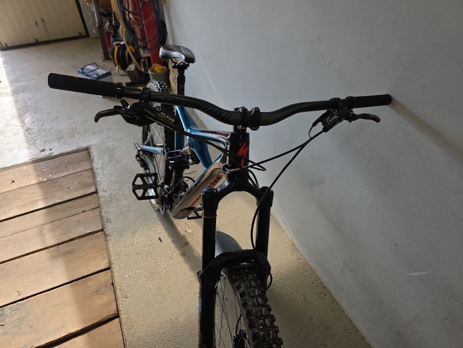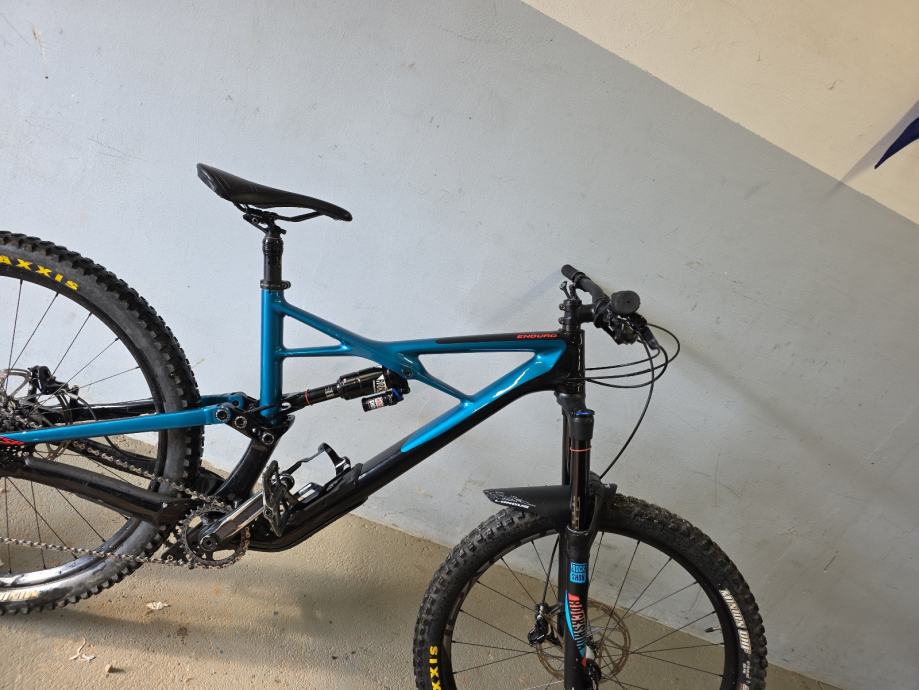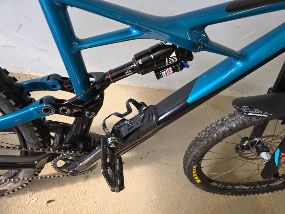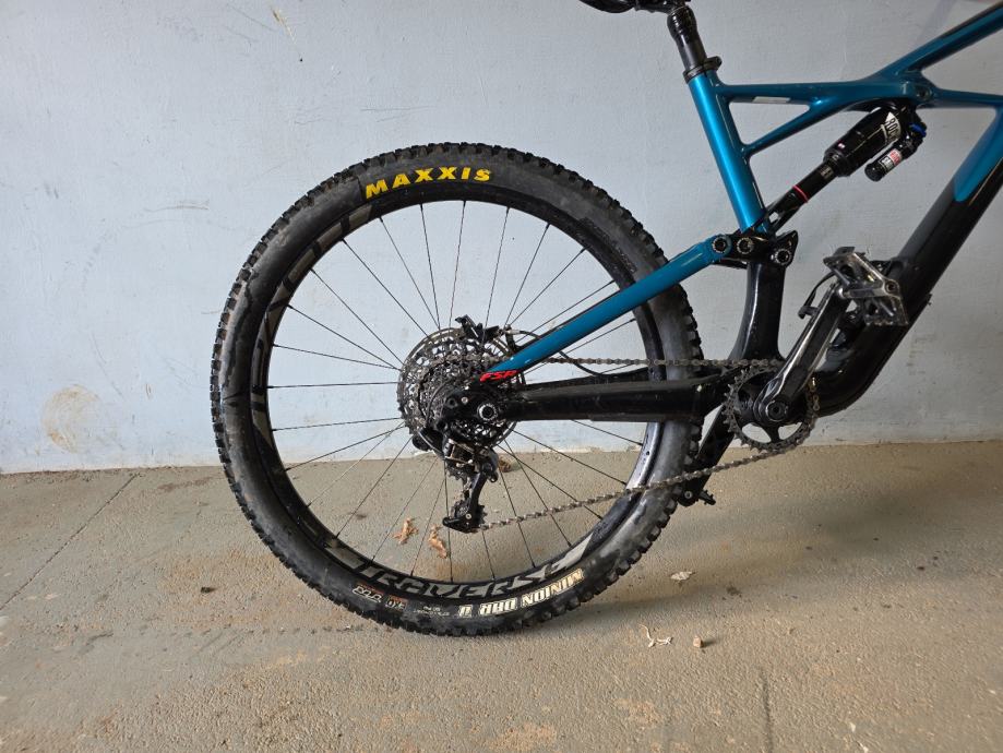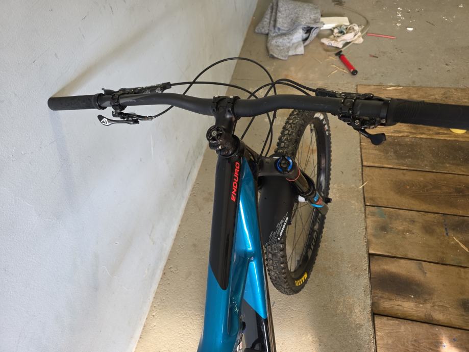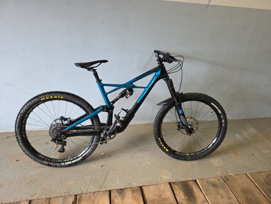 Karbonska rama,rock shox vilica pike RCT3,zadnji amortizer rock shox monarch plus Rc3,gume maxxis,felge roval traverse,kočnice sram guide na disk,mjenjač sram s 11 brzina,droper post i spremnik u rami