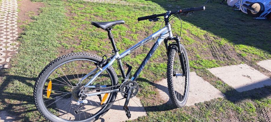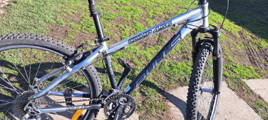 Prodajem MTB bicikl Bulls Comp 456, hardtail geometrije s kotačima od 26 inča. Radi se o muškom okviru veličine S (38-42 cm) u srebrnoj boji. Bicikl ima 24 brzine, odnosno 3x8 konfiguraciju mjenjača, a stražnji mjenjač je Shimano XT. Okvir je robustan i namijenjen terenskej vožnji.
