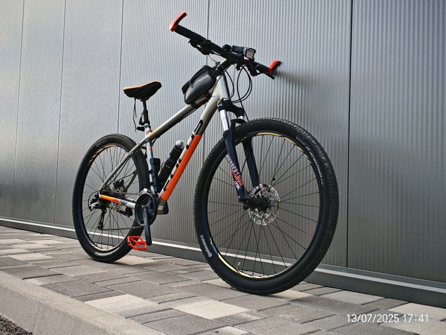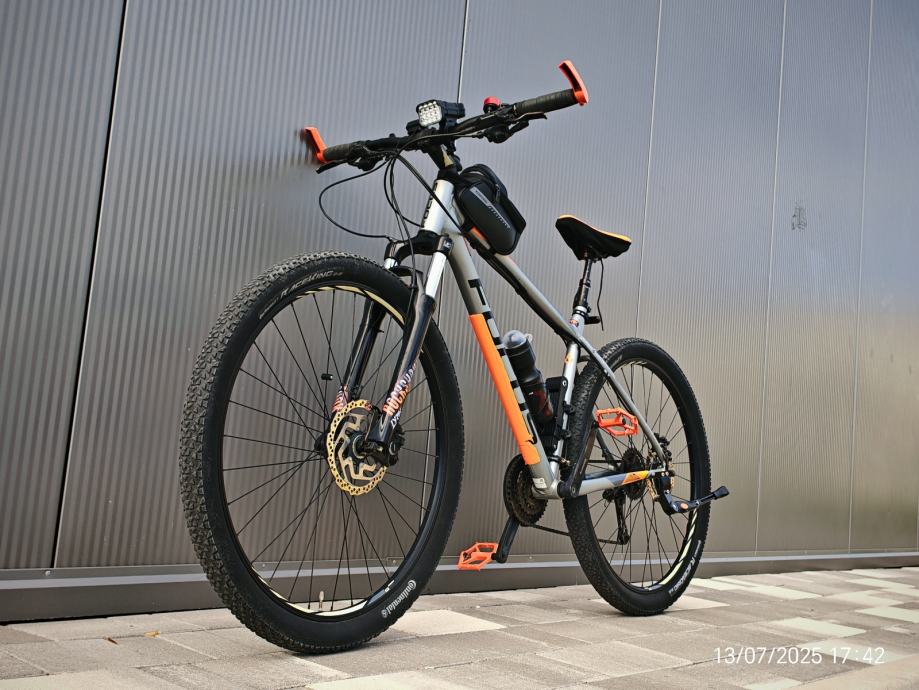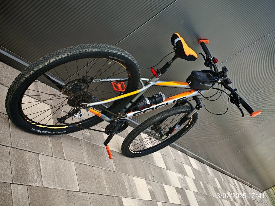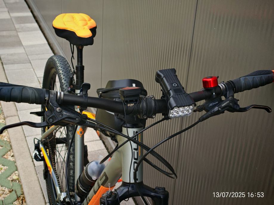 - Torbica na rami + boca + nosač za boce + nogar + USB punjivo svjetlo prednje i zadnje + zvonce + putno računalo + gel navlaka + amortizerska šipka sjedala + sigurnosna šipka na rasklapanje s 2 ključa + "rog" gripovi + štitnik rame + alu pedale u boji