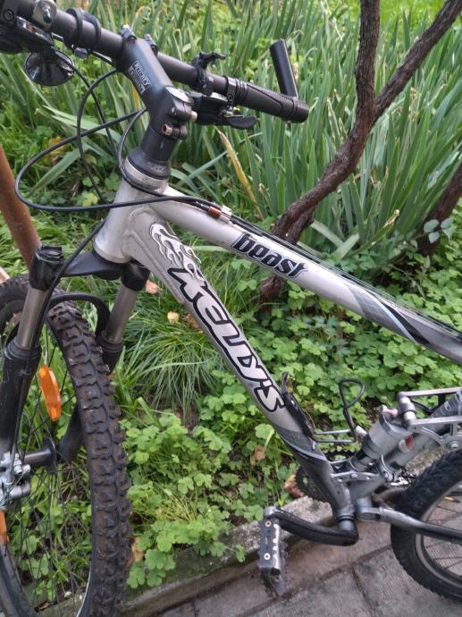 Osim malih ogrebotina u top stanju , 27 brzina , prednji disk , straga gumice , sic Author geliranje malo pohabani sa strane , malo korišten sto se vidi po gumama , dodatna oprema nosac glasove , truba , rogovi Ventura , rasv.eta , macje oci na gumama , na guvernalu i na nosacu sica , treperajucs svijetla napred led , straga 5 stupnjeva ,.nacija blinksnja ,2017.godine , nade in Slovakia , mazen i podmazivan , bez hrdje , uglavnom stajao u sobi ,
