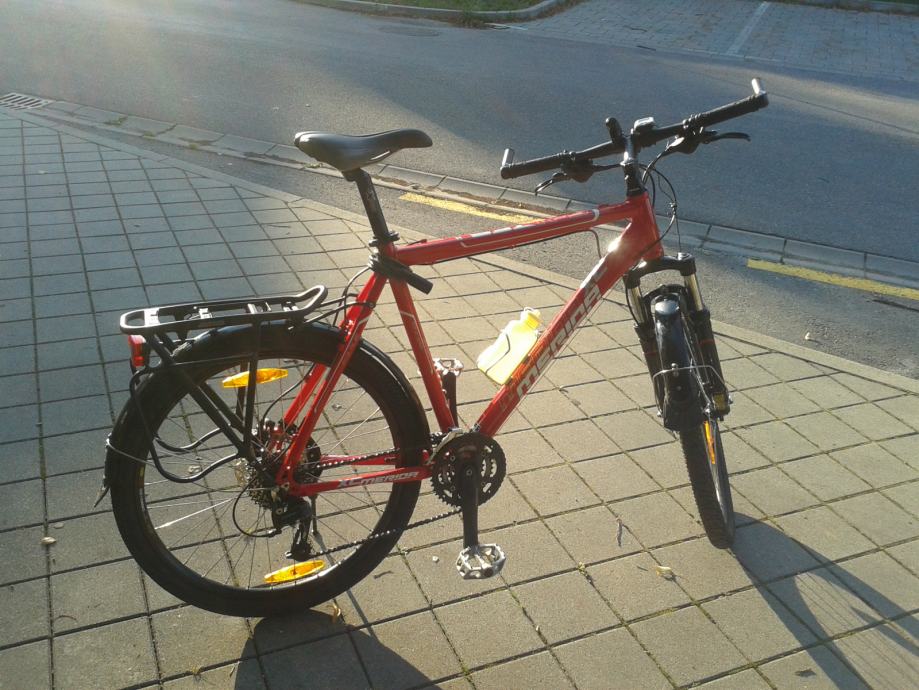 Prodajem bicikl Merida TFS300,veličina rame 52,bicikl je nedavno uredno kompletno servisiran(nove unutarnje i vanjske gume,novi prednji i zadnji pogoni i lanac)veličina kotača 26 cola,deore prednji i stražnji mjenjač,kočnice hidro disk također ugrađene nove disk pločice, 27 brzina kožno sjedalo za udobno sjedenje. na istome je ugrađen nosač te plastični blatobrani.bicikl je u top stanju.