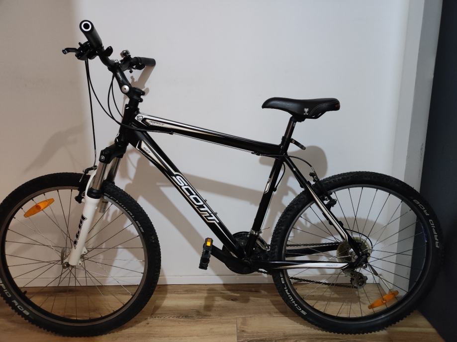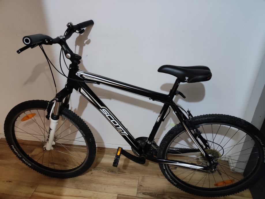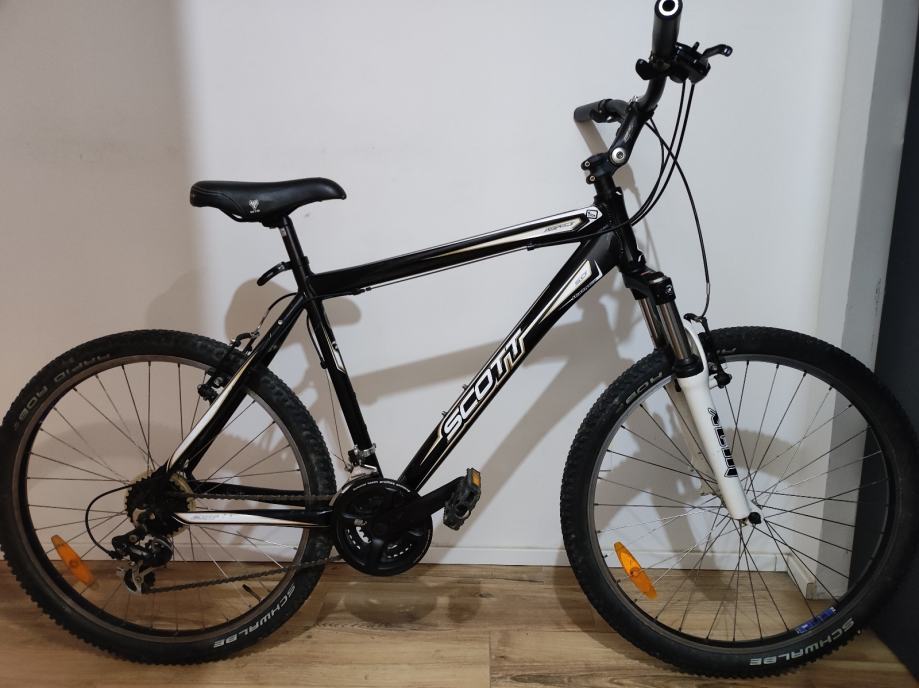 Prodajem MTB bicikl Scott Aspect u crnoj boji. Radi se o modelu s okvirom veličine L (48-52 cm) i kotačima od 26 inča. Okvir je aluminijski.