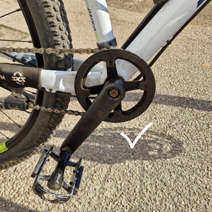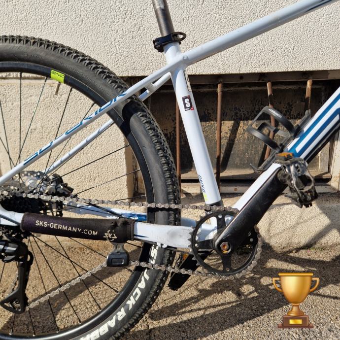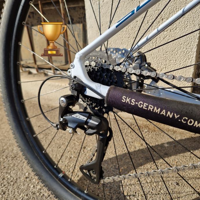 Dodatno stavljeni prednji blatobrani, zaštita rame od lanca, nosač bidona, zatezač lanca.