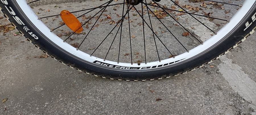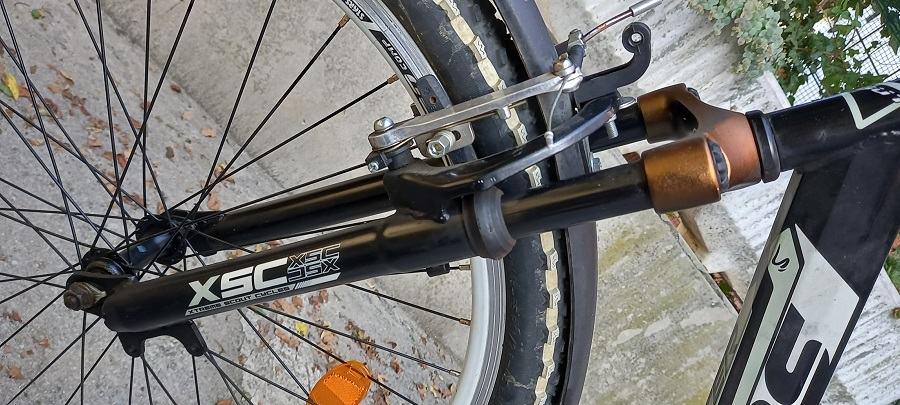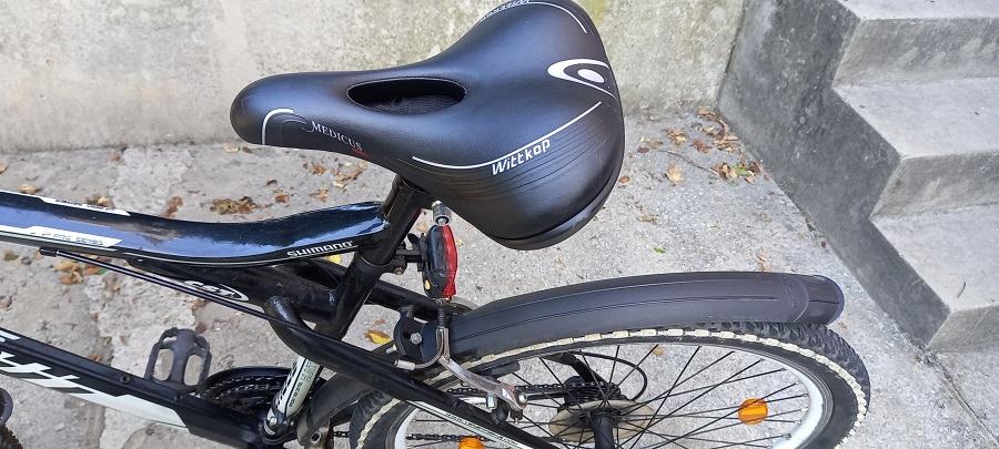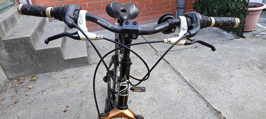 Bicikl je uščuvan, malo vožen, vidljivi slabi tragovi stajanja, sjedi i vozi.