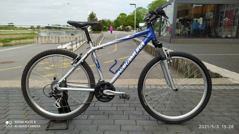 Nakamura Cliff Hanger, veličina rame 18in/54 cm (za osobe do 175cm), kotači 26, rama alloy 7005, vilica Suntour XCT lock out, Shimano 3x8 brzina, stanje jako dobro, servisiran i potpuno ispravan.
