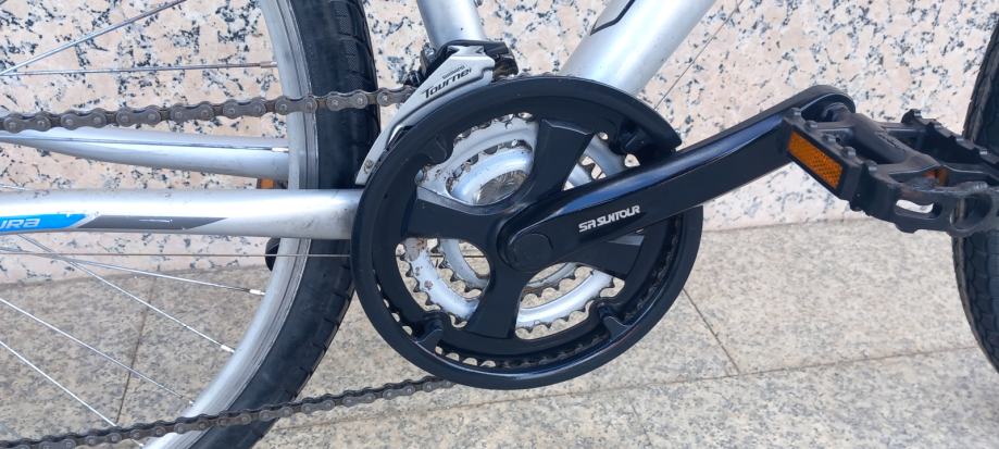 Alu rama za osobe do 195cm, prednja suspenzija, shimano tourney oprema, 21brzina, nosač bidona, nogica, 28cola dupla stjenka felge, servisiran