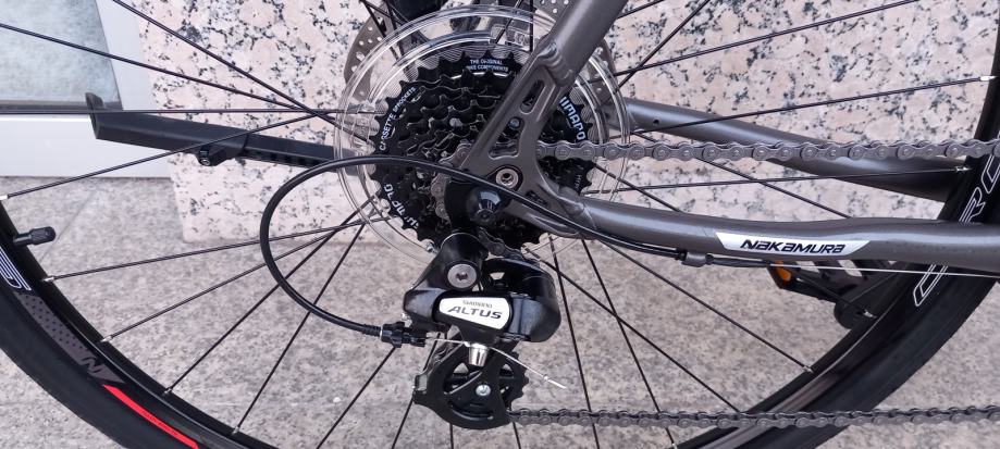 Alu rama za osobe 195cm, prednja suspenzija, shimano altus oprema, 24brzine, nosač bidona, nogica, 28cola dupla stjenka felge, servisiran, hidraulične disk kočnice, s papirima