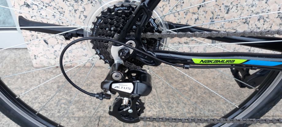Alu rama za osobe do 185cm, prednja suspenzija na zaključavanje, shimano altus oprema, 24brzine, nosač bidona, nogica, 28cola dupla stjenka felge, servisiran