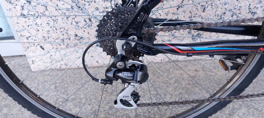 Alu rama za osobe do 180cm, prednja suspenzija, 24brzine, nosač bidona, 28cola dupla stjenka felge, nogica, servisiran shimano acera oprema