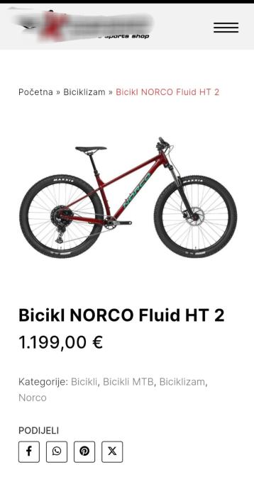 Norco Fluid HT2 vel L, kotaci 29", alu Agresivna rama, Deore 1x11, DROPER,...