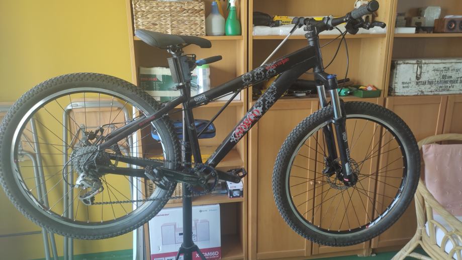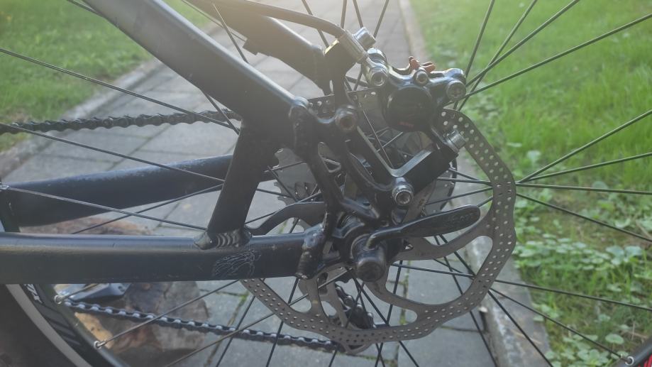 Sređen i servisiran, novi obruči, nove disk pločice, nove gume. Kočnice hidraulika Formula K10, pogon DH Truvativ, vilica Rock Shock Tora podesiva od U-turn100/150 hoda, rebound kompresija, lock out, pogonska grupa Shimano LX 9 brzina.