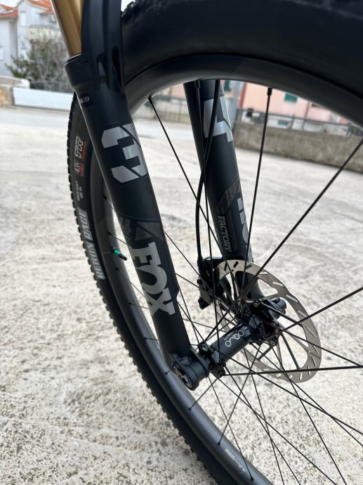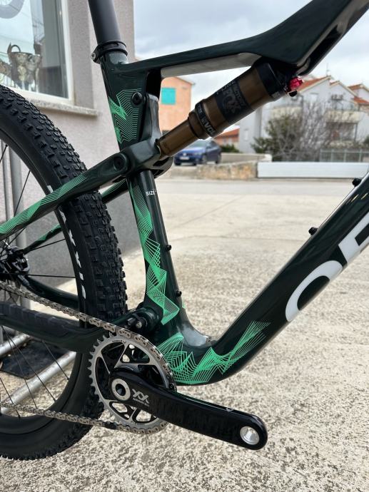 Orbea Oiz M-LTD je bicikl koji kombinira uravnoteženu geometriju sa savršenom upravljivošću na stazi kako bi vam pružio maksimalnu zabavu u vožnji. Orbea Oiz M-LTD je izuzetno brz, udoban, elegantan i atraktivan brdski bicikl izrađen od vrlo laganog, ali istovremeno i vrlo čvrstog karbonskog okvira. Dolazi sa vrhunskom FOX 34 FACTORY Kashima zračnom vilicom sa 120 mm suspenzije, sa FOX FLOAT FACTORY stražnjim amortizerom također sa 120 mm suspenzije, sa kombinacijom novog SRAM XX Eagle Transsmison AXS 1x12 pogonskih komponenti te SRAM Ultimate hidrauličnim disk kočnicama za pouzdano zaustavljanje u svim nepredvidivim situacijama. Integrirani bužiri i ugrađena FOX TRANSFER SL dropper cijev sjedala samo su šlag na torti ove biciklističke poslastice. Za što bolju udobnost i odlično prianjanje brinu se brze i odlično prianjajuće Maxxis Rekon Race 29x2.40'' gume montirane na čvrste i lagane OQUO Mountain Performance MP30 LTD karbonske kotače sa obručima unutarnje širine 30 mm.