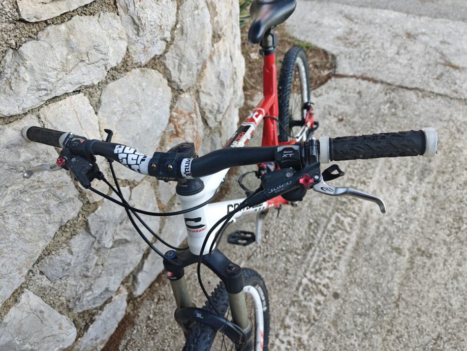 Prodajem dvije MTB bicikle od mog nećaka koji ih je prerastao (naglo se izdužio i trenutno je na 1,98m visine, a ima samo 16 godina) i potpuno zanemario, ne vozi ih već barem godinu dana. Nisu u bajnom stanju, neko vrijeme ih je držao čak vani pod nadstrešnicom, tako da nisu potpuno ispravne i treba im ljubavi. Zato je i cijena takva kakva je, plus možemo se još dodatno dogovoriti, nije fiksna. Sve je vidljivo na slikama, na zahtjev pošaljem još ako treba. Nisu baš bezvezni modeli, jedna je Corratec Airtech Mutant (koju je on još dodatno moddao boljim komponentama), druga je Hexagon 5.0 Kross. Pa nešto još vrijede nekome tko bi im udahnuo život ponovno ili ih iskoristio za dijelove. Restaurirao bi ih i sam, ali već imam dva odlična MTB-a pa mi se iskreno ne da, radije nek idu nekom ozbiljnom entuzijastu. Preferiram prodaju u kompletu. Nalazim se na otoku Cresu, povremeno idem u Rijeku ili Zagreb autom pa se možemo dogovoriti da vam ih dovezem ako ste na toj ruti.