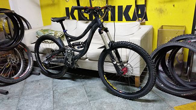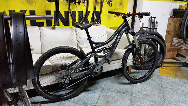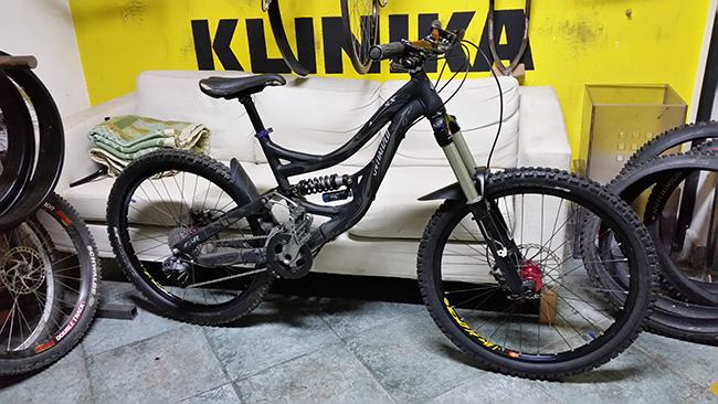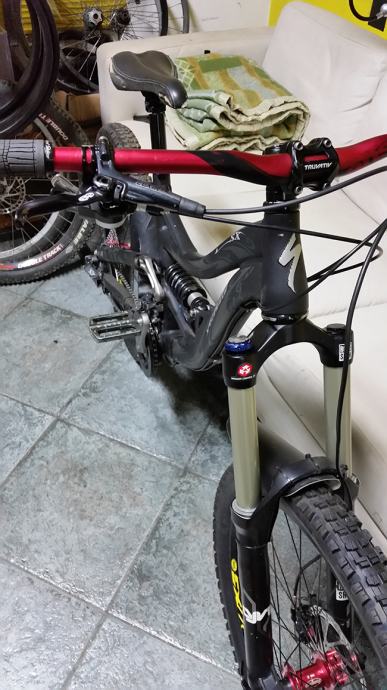 napravljen je generalni servis i promjenjene su brtve, zamjenjeno je ulje u suspenzijama i stavljeni su gotovo novi rotori. novi zadnji mjenjač, mint stanje kazeta i lanac; u kočnicama zamjenjeni skoro pa svi dijelovi, tako da su maltene nove. ima bulletproof kotače, nevoženu novu prednju gumu i gumificiranu boju s koje se vrlo lako skida blato, ništa se ne ljepi. ovaj stroj je mini DH čudovište s kojim se može pedalirati. visok sam 184 cm i bicikl mi nije mali.