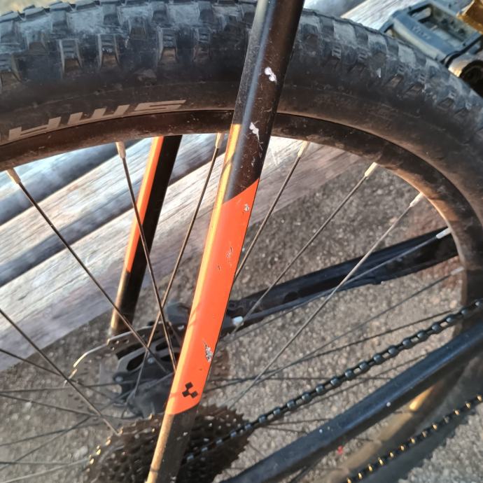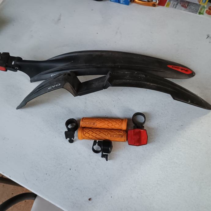Prodajem Cube AIM-SL brdski biciklo, kao nov je ali se vide znakovi korištenja kao što su ogrebotine.Stavio sam nove ručke i nove unutarnje gume(zračnice) na njega,jednom je padano s njega ali sve radi normalno,uz njega dolazi sve što je skidano s njega(stare ručke,zvonce,zadnje svijetlo i još jedan neki dio) i još dajem uz njega set prednjeg i stražnjeg blatobrana(nijednom korišteni)(NAPOMENA:LOKOT KOJI JE NA SLIKAMA NE DOLAZI UZ NJEGA). Servisiran