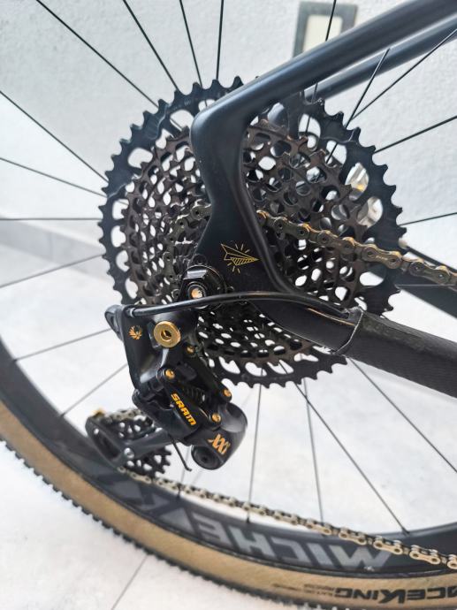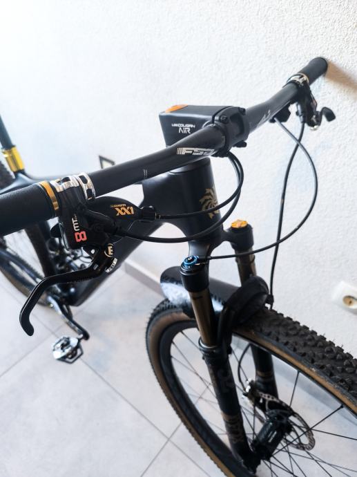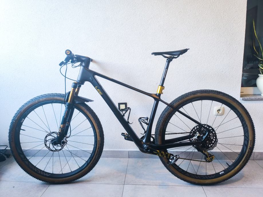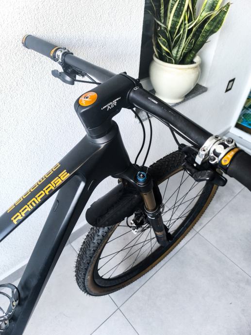 Prodajem MTB Lee Cougan Rampage Air, M veličina. Full karbon, Sram xx1 grupa 1x12, KAZETA 11-50, pogon ovalni 36T, KOČNICE Magura MT8 pro, KOTAČI karbonski Miche K1 29", VILICA FOX factory 32 sc kashima remote lockout ljetos odrađen full servis, karbonska šticna i volan FSA, sic Fizik Antares R5. Gume Continental Race King 29x2.2 tlr vrlo malo vožene. Dodaci: rie:sel design Schlamm mudguard, Bontrager karbonski nosači bidona, XT spd pedale. RAM je malo veći M, više M-L. Uz bike dođe i orginalna dodatna lula duža 1cm. Vrlo lagan bike, oko 9 kg, prava XC mašina. Cijena 1900€. Kontakt +38763218168