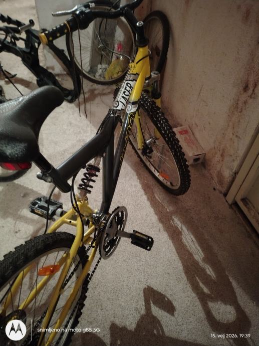 Prodajem MTB bicikl s 26-inčnim kotačima i ramom veličine S (38-42cm). Radi se o muškoj geometriji rame, pogodnoj za razne terene i vožnju po gradu. Bicikl ima prednju amortizacijsku vilicu i tipične MTB karakteristike. Funkcionalan je i spreman za korištenje.