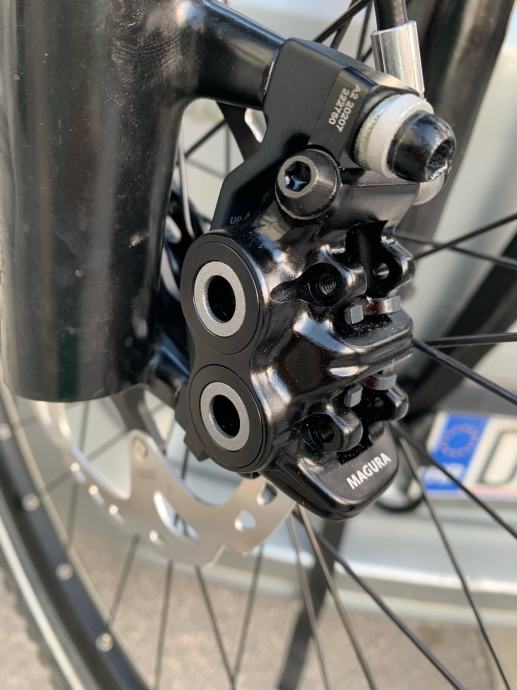 Na biciklu gotovo ništa nije tvorniški kao što se vrlo lako da uočiti. Uloženo je stvarno puno para i živaca u njega. Imam račun garanciju te sve njegove papire. Kupljen 6.3.2021. Vožen gotovo svaki dan redovno podmazivan i servisiran. Većina dijelova je staro po par mj jer je mjenjan kompletan pogonski i kočioni sustav. Prije nekoliko dana su stavljene schwalbe nobby nic pa ih zato na nekim slikama i nema.