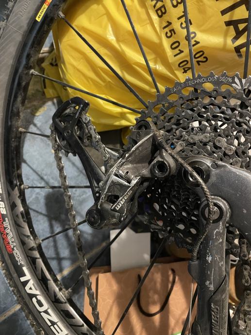 Kocnice su disk Shimano XTR sa Shimano diskovima.Pogon je Sramm xx1 sa ovalnim zupcanikom . Mjenjac je gx 1x12 sa shifterom sram gx.Pedale xtr trail ili obicni spd.Sjedalo je Prologo scratch a dropper je Giant control 150 mm.