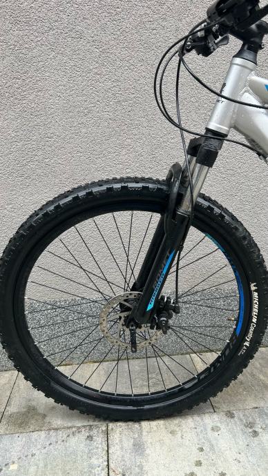 Prodajem Romet Rambler MTB bicikl s hardtail ramom u muškoj geometriji. Bicikl ima 26-inčne kotače i ramu veličine M (44-47cm), što odgovara osobama srednje visine. Okvir je bijele boje s crnim detaljima, a bicikl je opremljen disk kočnicama. Upravljač je standardan ravni tip s ručkama i kontrolama prebacivanja, a ima i standardne pedale. Gume michelin su terenske s dobrim profilom za vožnju po različitim podlogama.