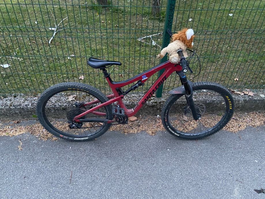 Bajk je full karbon rama i ima karbon dijelova, svi glavno djelovi su stock (osim volana,pedala,break pads, stem...) i bajk vecinu vremena sjedi u garazi te nije vidio staze vec 2 godine. (tuzno)