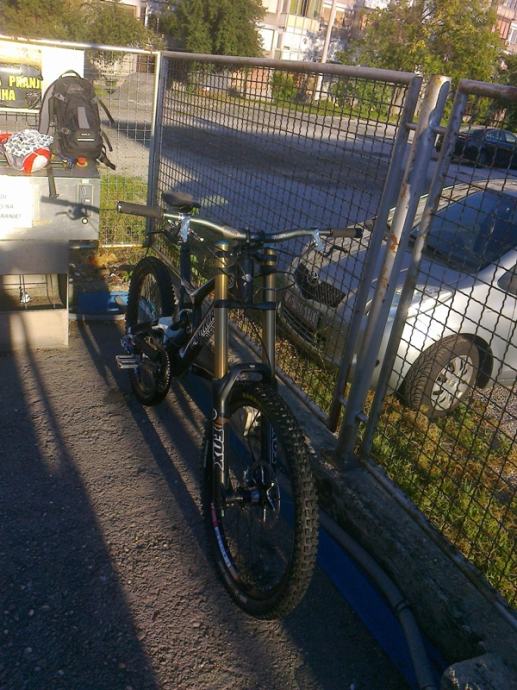 Prodaje se Santa Cruz V10-4 Carbon 2012. godina, boja crno/zlatno/bijela, XL veličina. Radi se o jednom od najboljih Downhill bicikala na svijetu, vrhunskih performansi i male težine.